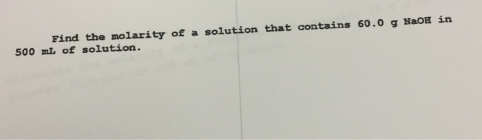 What Is The Molarity Of A Solution That Contains 30 Grams Of Naoh In 500 : What Is The Molarity Of A Solution That Contains 30 Grams ... - If you weighed 320 g of naoh and diluted it to 2 liters with water what is the molarity of the solution?